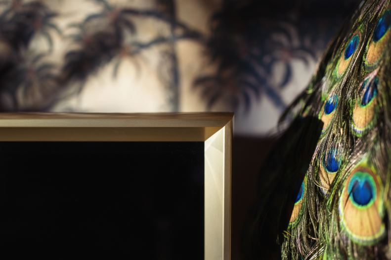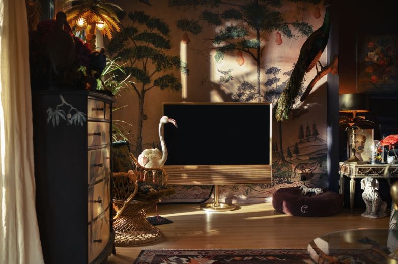 Perfekt umgesetzt ist dieser beeindruckende Einrichtungsstil. Auch die Technik wird hier vollständig integriert, ohne als störend zu wirken. Der Bang & Olufsen Contour in der Farbe gold zeigt sich von seiner schönsten Seite und selbst die Fernbedienung könnte nicht besser in Szene gesetzt werden.