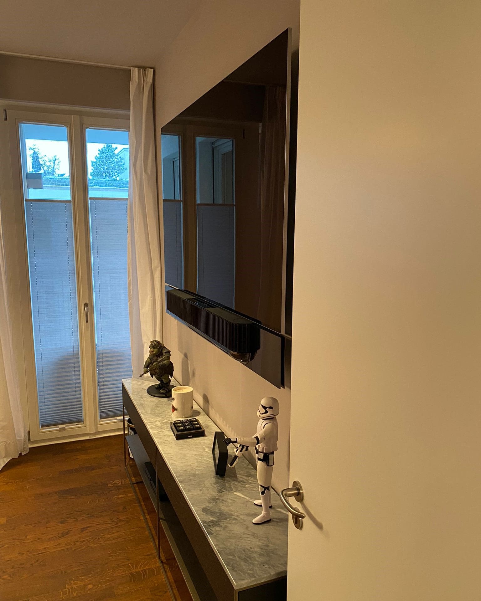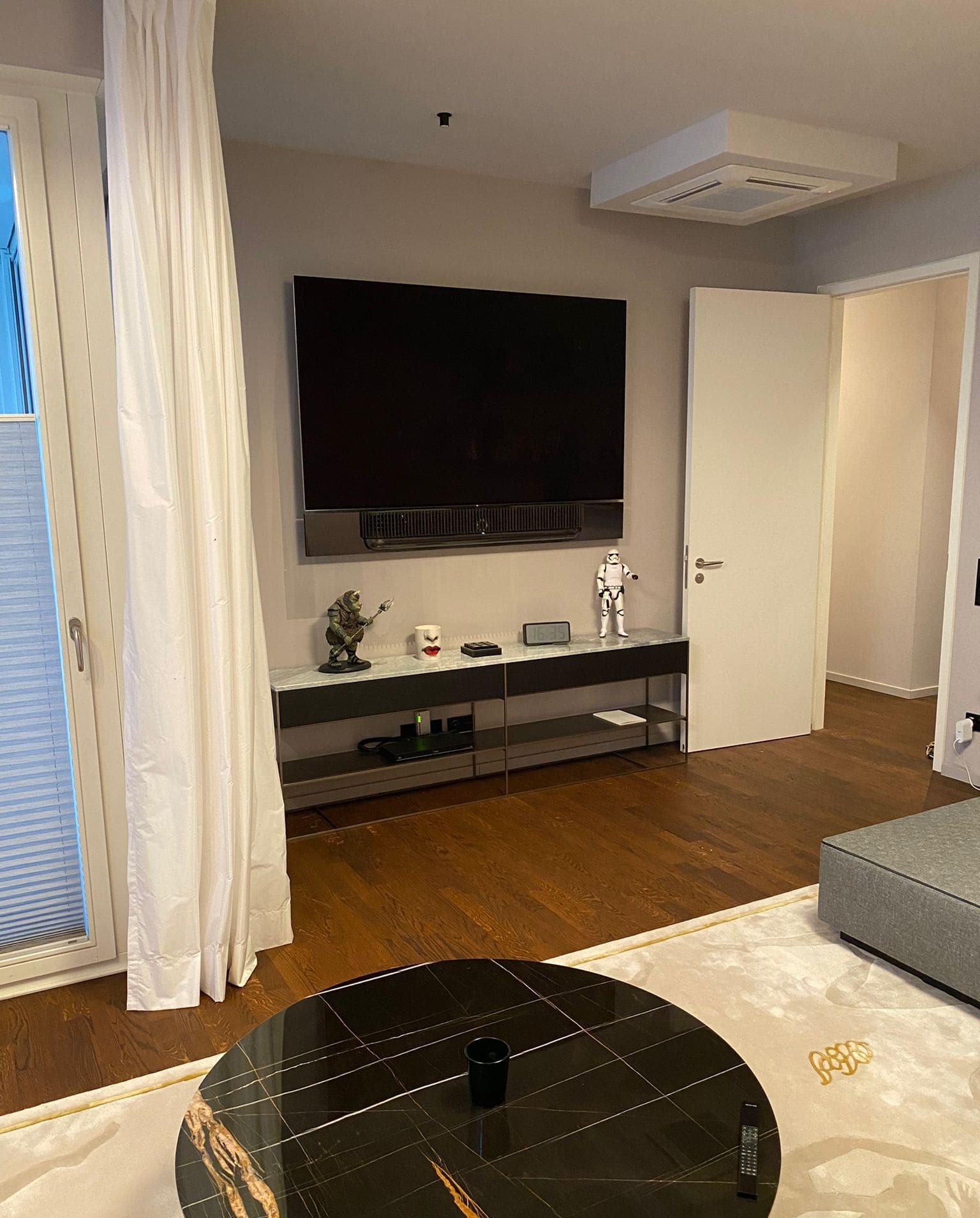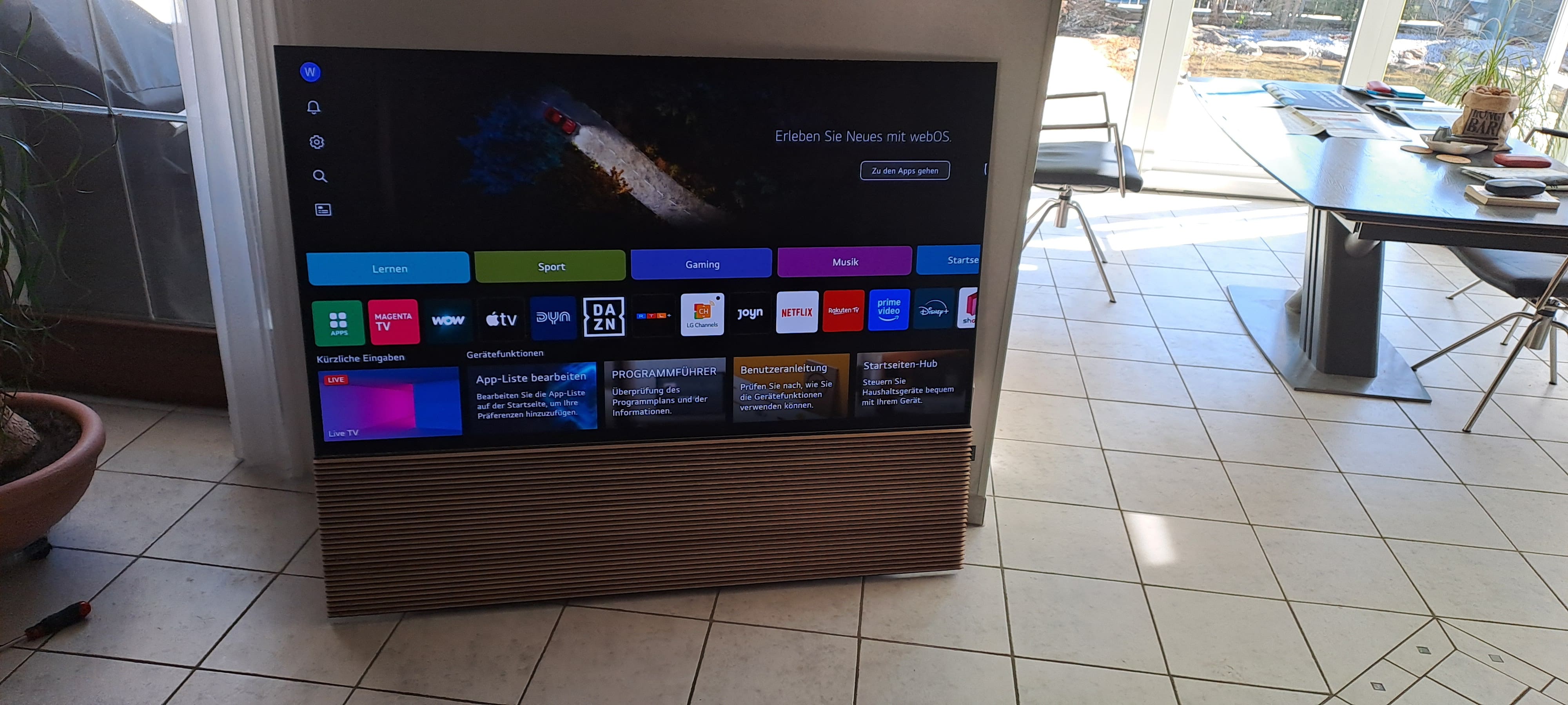 Der erste ausgelieferte Loewe Stella stylisch integriert. Mit seinem grauen TV-Stand passt er sich farblich optimal an. Mit seinen vielen features wie Loewe os, Apple AirPlay und DTS Play-Fi ist er der perfekte Allrounder. Durch seine OLED Panels und dem Dolby Vision, bietet er ein perfektes TV-Erlebnis. Mit seinen vielseitigen Streaming angeboten wie Netflix, YouTube, Amazon prime video, Disney+, Apple tv+, Rakuten, Deezer, Paramount+, HD+, Zattoo, FIFA+ und mehr wird einem nie langweilig.