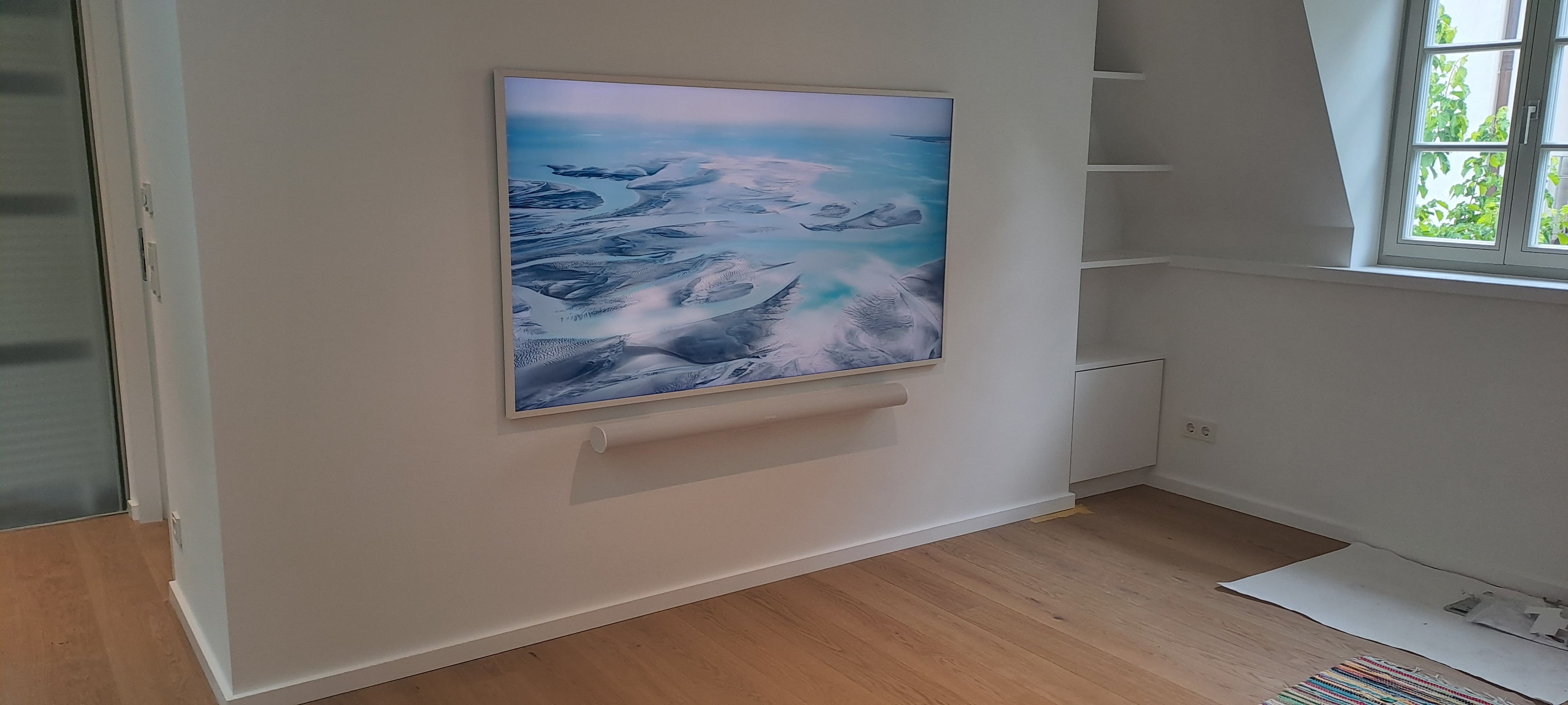 In diesem Neubauprojekt wurden insgesamt 3 Samsung Frame verbaut, die Fernseher haben dazu jeweils noch verschiedene Lautsprecher bekommen. Dank des modernen und eleganten Designs von dem "the Frame" fügt sich der Fernseher nahtlos in jedes Zuhause ein. Die dünne gestalltung des TV´s in kombination mit der Slim-fit-Wandhalterung wirkt der Fernseher eher wie ein Bild und ergänzt somit jeden Wohnraum. Dank der magnetischen Rahmen des Fernsehers, bietet sich Ihnen die Mgölichkeit, jederzeit das Gerät an Ihre Wohnumgebung anzupassen. Dank der Sonos Lautsprecher ergibt sich ein gutes Fernseheerlebnis, dass Sie in seinen Bann zieht.